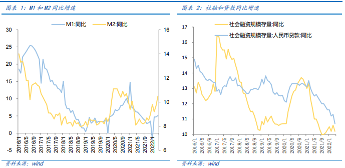 4月金融数据下滑较大,主因季节性和疫情扰动。4月M1同比增5.1%,M2同比增10.5%,增速平稳体现了央行前期降准和上缴利润等宽货币政策的效果。4月新增社融仅9102亿,同比少增21925亿,4月份人民币贷款增加6454亿元,同比少增8231亿元。