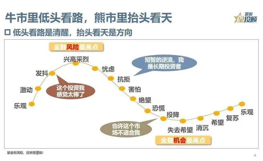 牛市里低头看路,是清醒,熊市里抬头看天,是方向。市场好的时候,会有“树能涨到天上”的幻想;市场不好的时候,也有“跌落无底深渊”的恐惧。但是,即便众人皆醉,也要脚踏实地,即使深陷泥潭,仍要心怀远方。
