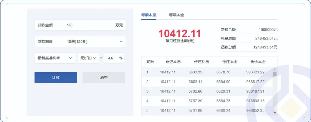 按照基准利率4.6%计算,假设我们有100万房贷,贷款期限10年,按照等额本息还款方式,利息总额为24.95万元。如果提前还贷,相当于这笔投资的收益在十年后是24.95万元,十年累计收益率为24.95%。