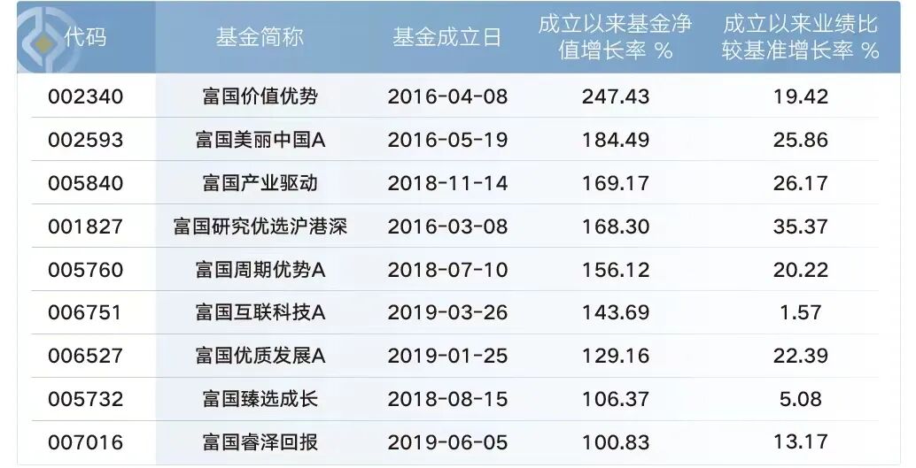 1、富国价值优势成立于2016年4月8日,自2017至2021年业绩及比较基准(中证800指数收益率*80%+中债综合全价指数收益率*20%)收益率分别为:2017年28.79%(11.28%),2018年-27.75%(-21.57%),2019年70.9%(26.9%),2020年86.83%(20.66%),2021年27.23%(-2.33%)。历任基金经理变动情况:王海军自2016年4月至2019年6月任基金经理,孙彬自2019年5月至今任基金经理。 2、富国美丽中国A成立于2016年5月19日,自2017至2021年业绩及比较基准(沪深300指数收益率*60%+中债综合全价指数收益率*40%)收益率分别为:2017年29.47%(11.14%),2018年-12.48%(-14.01%),2019年47.89%(21.49%),2020年66.59%(16.24%),2021年13.83%(-1.95%)。历任基金经理变动情况:张啸伟自2016年5月至今任基金经理。以上富国美丽中国数据描述对象均为富国美丽中国A类。 3、富国产业驱动成立于2018年11月14日,自2019至2021年业绩及比较基准(沪深300指数收益率*60%+上证国债指数收益率*40%)收益率分别为:2019年44.34%(22.93%),2020年90.81%(17.94%),2021年23.38%(-1.14%)。历任基金经理变动情况:厉叶淼自2018年11月至今任基金经理。 4、富国研究优选沪港深成立于2016年3月8日,自2017至2021年业绩及比较基准(沪深300指数收益率*65%+中债综合财富指数收益率*35%)收益率分别为:2017年24.21%(13.89%),2018年-25.89%(-14.51%),2019年43.17%(24.65%),2020年78.4%(18.86%),2021年32.98%(-1.34%)。历任基金经理变动情况:李晓铭自2016年3月至2019年4月任基金经理,汪孟海自2017年12月至2021年1月任基金经理, 刘莉莉自2 019年1月至2021年10月任基金经理,厉叶淼自2020年4月至今任基金经理。 5、 富国周期优势A成立于2018年7月10日,自2019至2021年业绩及比较基准(沪深300指数收益率*80%+中债综合全价指数收益率*20%)收益率分别为:2019年58.54%(28.68%),2020年72.88%(21.73%),2021年14.89%(-3.52%)。历任基金经理变动情况:刘博自2018年7月 至2022年1月任 基金经理。以上富国周期优势数据描述对象均为富国周期优势A类。 6、 富国互联科技A成立于2019年3月26日,2020完整会计年度及2021年业绩及比较基准(中证互联网指数收益率*80%+中证全债指数收益率*20%)收益率分别为:2020年84.98%(14.74%),2021年12.94%(4.48%)。历任基金经理变动情况:许炎自2019年3月至今任基金经理。以上富国互联科技数据描述对象均为富国互联科技A类。 7、 富国优质发展A成立于2019年1月25日,2020完整会计年度及2021年业绩及比较基准(沪深300指数收益率*60%+中债综合全价指数收益率*40%)收益率分别为:2020年70.02%(16.24%),2021年23.04%(-1.95%)。历任基金经理变动情况:曹文俊自2019年1月至今任基金经理。以上富国优质发展数据描述对象均为富国优质发展A类。 8、 富国臻选成长成立于2018年8月15日,自2019至2021年业绩及比较基准(中证800指数收益率*40%+中债综合全价指数收益率*40%+恒生中国企业指数收益率(经汇率调整后)*20%)收益率分别为:2019年39.85%(16.25%),2020年56.03%(8.26%),2021年5.61%(-4.7%)。历任基金经理变动情况:俞晓斌自2018年8月至2020年4月任基金经理,易智泉自2018年8月至今任基金经理。 9、 富国睿泽回报成立于2019年6月5日,2020至2021年业绩及比较基准(中证800指数收益率*50%+中债综合全价指数收益率*50%)收益率分别为:2020年66.28%(12.89%),2021年20.79%(1.02%)。历任基金经理变动情况:张啸伟自2019年6月至今任基金经理。