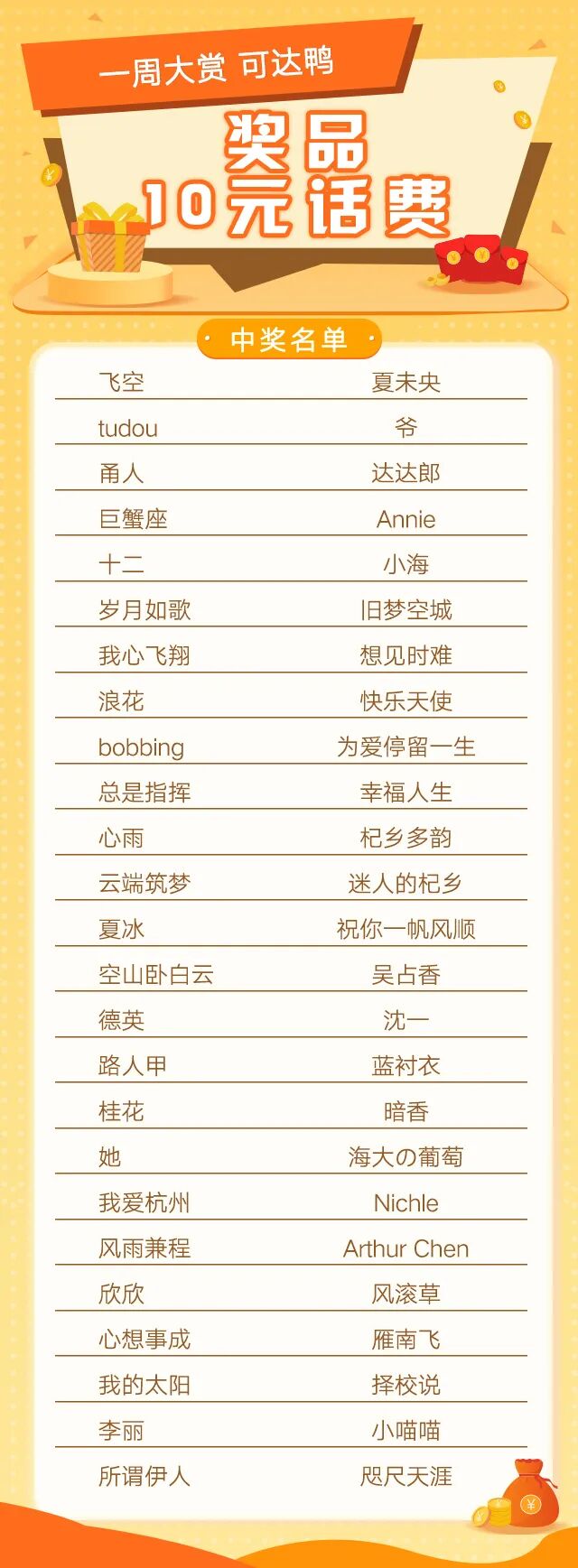 小编将于后台联系获奖的客官,话费将于6月3日(本周五)前充值到中奖客官的手机号码中,请各位客官耐心等待~