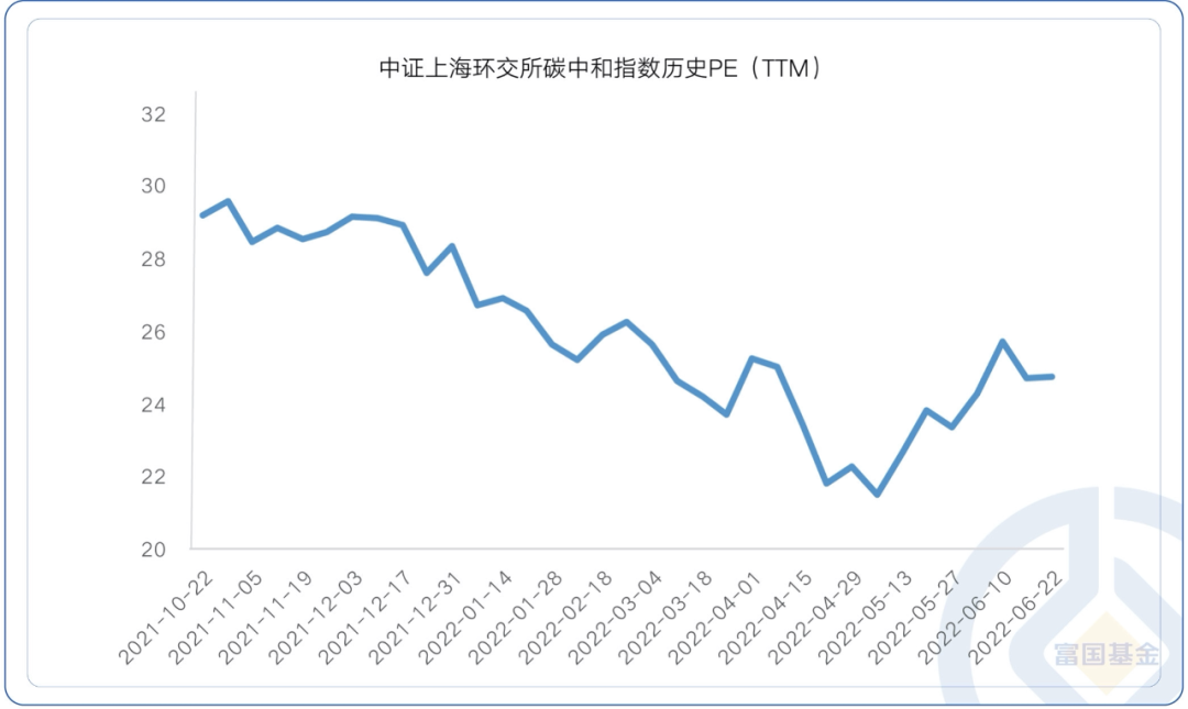 注:数据来源:Wind,2017年6月30日-2022年6月16日 与此同时,当前中证上海环交所碳中和指数PE(市盈率)为24倍,处于指数上市以来的历史35.29%的分位点,安全边际较高,向上空间较大。