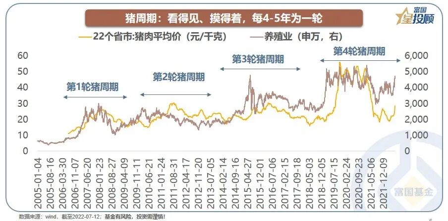 看得见的猪周期,看得到的机会。2006年以来,共有三轮完整的猪周期,每一轮周期大约为4-5年。第四轮猪周期开始于2019年2月,截至目前已经历了3.5年。历史不会简单的重复,但总会押着相同的韵脚。随着周期波谷波峰的往复,当下的猪肉价格或许将迎来“筑底”后的新一轮周期。