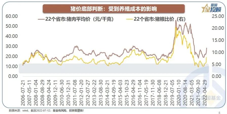 “猪粮比”是很好的底部判断标准。在2006年以来的四轮猪周期中,猪价见底都伴随着猪粮比跌至5左右。事实上,粮食是猪饲料的主要成本,当猪粮比处在底部区域时,往往也意味着养殖出现深度亏损,这在最终会导致能繁母猪产能的加速去化。