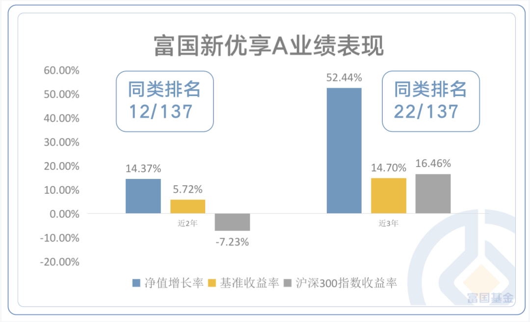 富国新优享也表现出特别不错的韧劲,近3年收益率达52.44%,在同类基金中排名居前15/73。