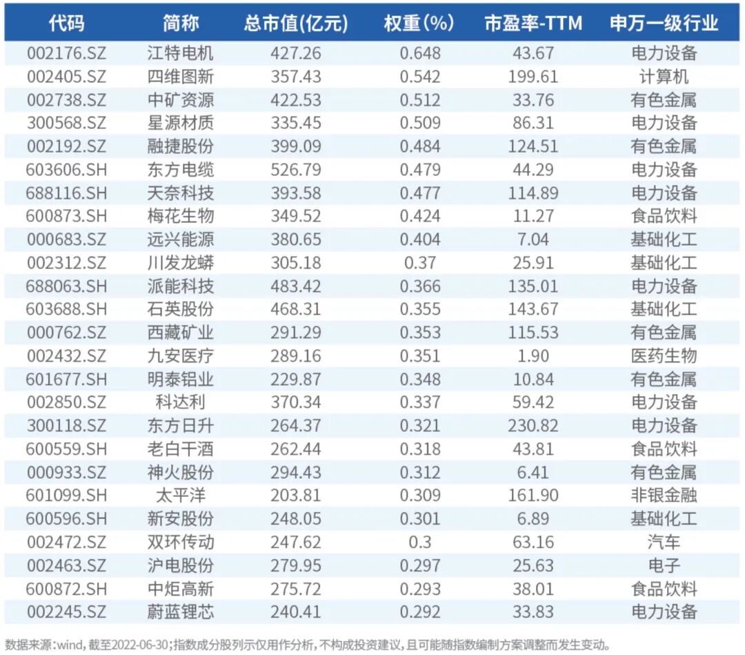 数据来源:wind,截至2022-06-30;指数成分股列示仅用作分析,不构成投资建议,且可能随指数编制方案调整而发生变动。