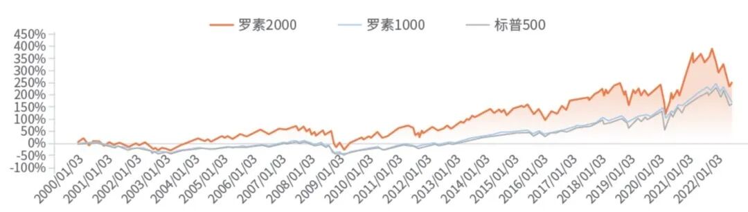 ● 从海外成熟市场经验看,对比美国小盘指数(罗素2000)和大盘指数(罗素1000)以及经典指数标普500的表现看,小盘股指数罗素2000的长期收益更高,整体收益弹性更强;