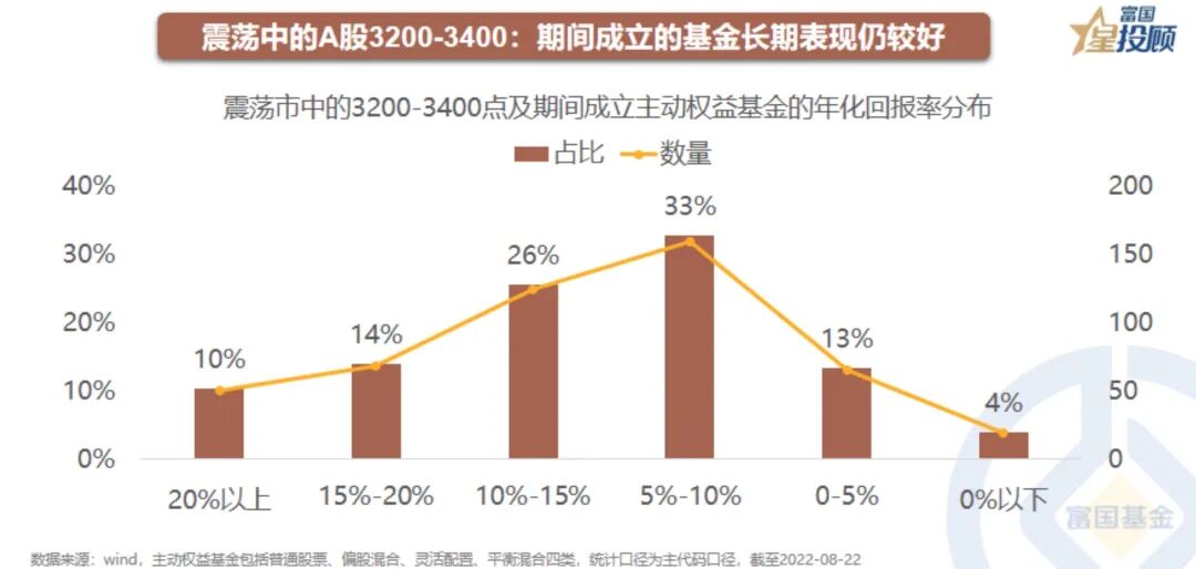 不管是上涨中、下跌中还是震荡中的A股市场3200-3400点,期间成立的主动权益基金,长期年化回报约一半取得10%以上的收益,长期亏损概率较低。