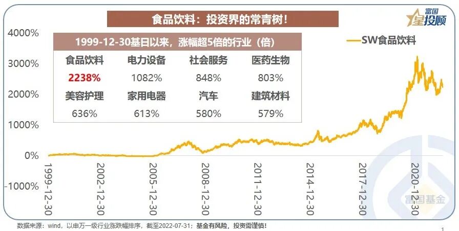 食品饮料:投资界的常青藤。其一,黄金赛道。1999年12月30日的基日以来,食品饮料行业,涨幅超过22倍,排名第一。其二,牛股摇篮。2015年至今A股十倍股共71只,食品饮料行业占据5席。其三,价值投资的典范。食品饮料行业周期性较弱,且很多公司能够持续的成长。基于此,食品饮料的研究,可以在时间维度上,积蓄复利的力量。