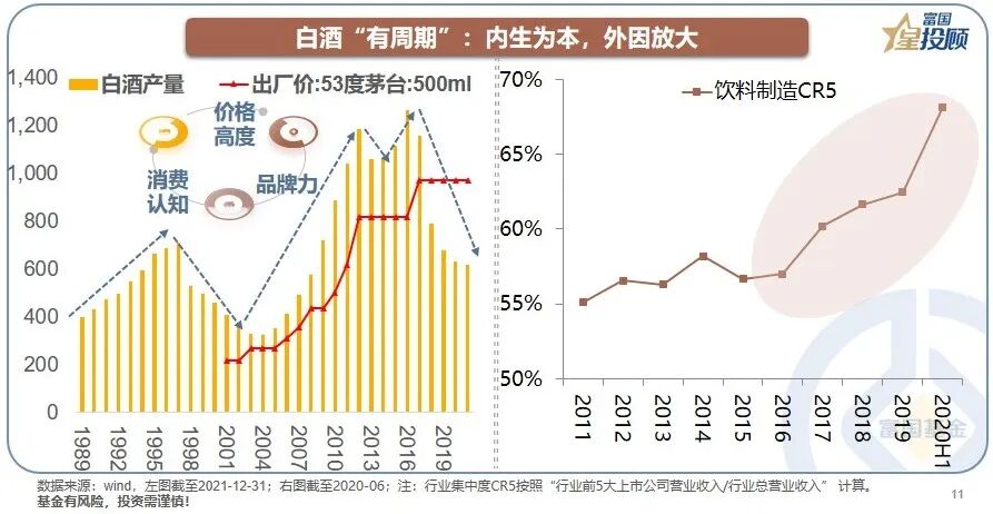 白酒“有周期”:内生为本,外生放大。内生为本是说,经销商库存、批价是根本;外生放大是说,白酒与商务活动联系紧密,宏观政策外因是调节器。2016年以后,消费升级和集中度提升成为白酒的核心驱动。基于此,即使当下股价低迷,但“高端酒”的产能占比不足10%,瓶颈依然较大,不妨以更长远的眼光来看待白酒的价值。