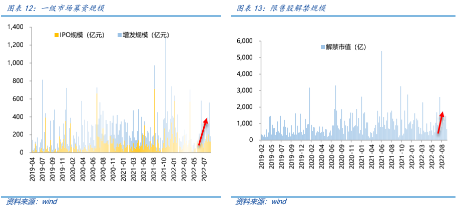 资金需求方面,本周一级市场规模有所减少,限售股解禁压力上行,重要股东减持。本周一级市场资金募集金额合计183.85亿元,较上周减少70% ;结构上,IPO募集124.5亿元,周环比减少0.13% ;增发募集59.35亿,周环比减少87.84% 。本周限售股解禁规模合计673.19亿元,周环比减少31.31% ,根据目前披露的数据,预计下周解禁规模约435.23亿元,解禁压力有所上行。本周重要股东减持62.33亿元,上周减持73.15亿元。