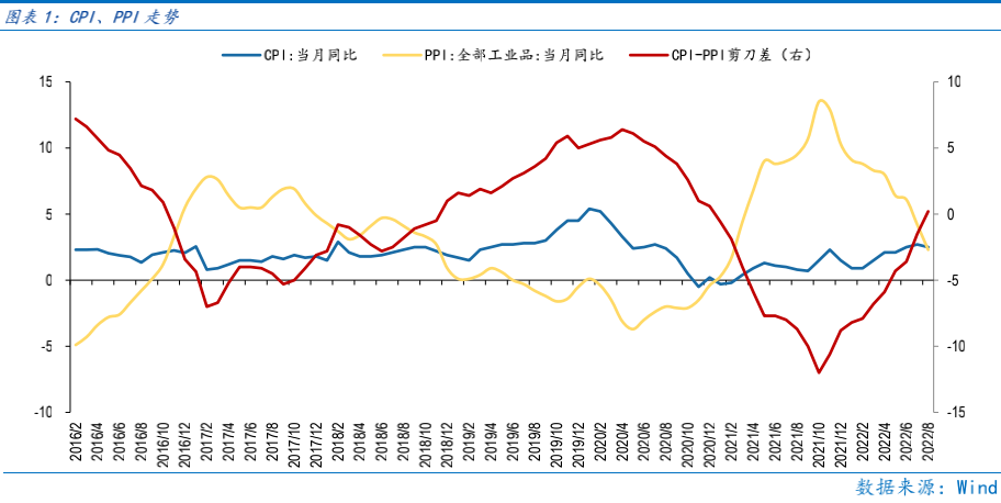 8月CPI为2.5%,PPI为2.3%,分别较上月回落0.2和1.9个百分点,显示当前经济通胀压力较小,为货币政策创造良好的弱通胀环境。此外,CPI-PPI剪刀差持续扩大,有助于利润从上游向下游制造业、消费行业转移,利于消费、制造业复苏。