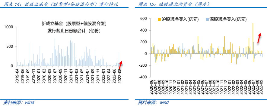 向前看,市场通过下跌将经济弱逐步纳入预期,在“底部区域”,市场更应关注积极的变化。当前是积极的变化有五。1)在重要会议以前,通常政策求“稳”意愿足,预计到10月中旬政策对市场的支持力度或有增无减;2)8月通胀低于预期,强化市场的流动性宽松预期;3)欧洲天然气储备完成,天然气价格大幅回落,欧元企稳美元指数回落,叠加央行外汇降准将在本周四落地,人民币汇率有望企稳反弹,有助于北上资金回流;4)8月社融仍弱但显复苏迹象,有助改善市场较低的经济预期;5)本轮调整主因交投过热,而非景气衰减,因此市场当前缩量后,交投情绪回落,已经释放了调整压力,前期的景气赛道或重新受到资金青睐。