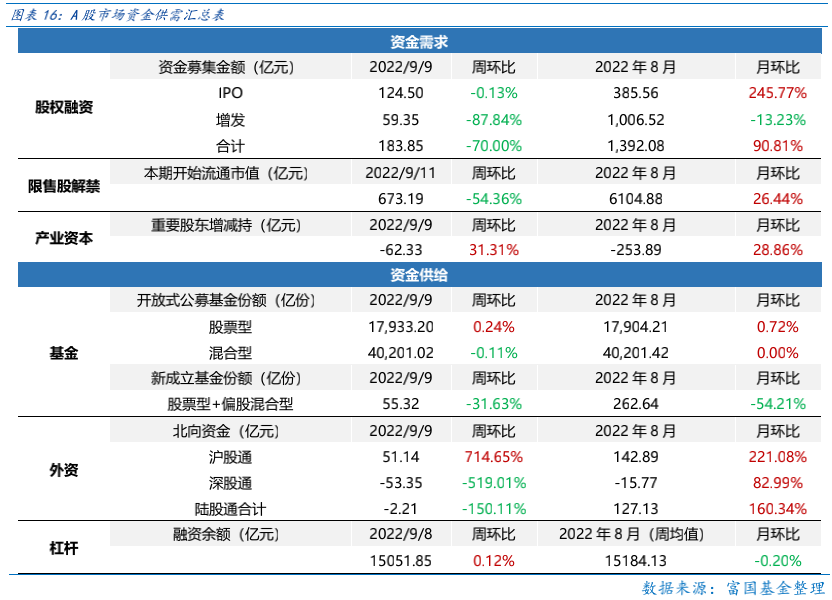 资金供给方面,本周基金发行减少,北向资金净流出。本周北向资金净流出2.21亿元,较上周减少150.11% ,其中沪股通净流入51.14亿元,深股通净流出53.35亿元。本周新成立股票型及偏股混合型基金份额合计55.32亿份,环比减少45.16% ,显示基金发行遇冷。本周开放式公募基金份额较稳定,其中股票型份额几乎保持不变为17933.2亿份,混合型份额几乎保持不变为40201.02亿份。