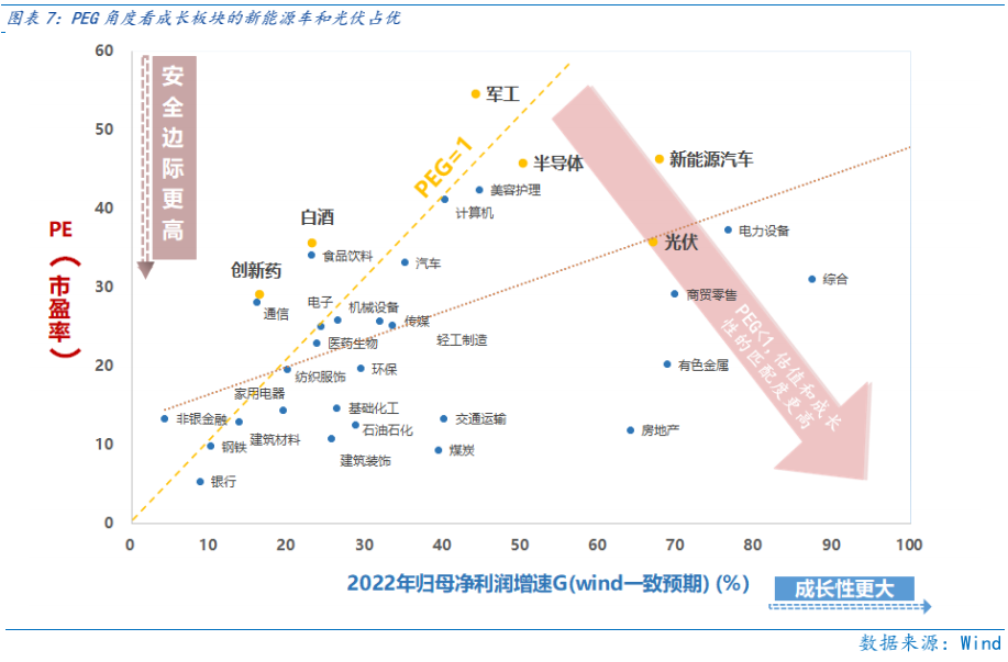成长板块:着眼长期布局,当前成长板块的储能、光伏(设备)、风电(海风)、新能源运营商、新能源车、军工、半导体等行业PEG角度仍有估值性价比。