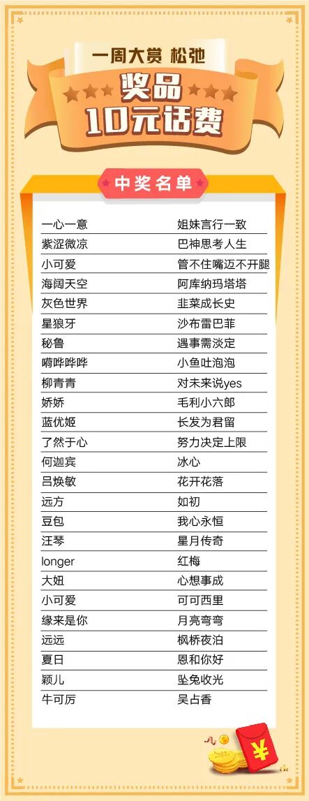 小编将于后台联系获奖的客官,话费将于9月23日(本周五)前充值到中奖客官的手机号码中,请各位客官耐心等待~