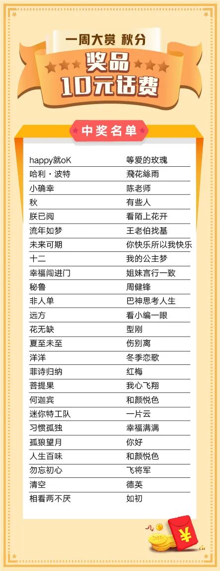 小编将于后台联系获奖的客官,话费将于9月30日(本周五)前充值到中奖客官的手机号码中,请各位客官耐心等待~