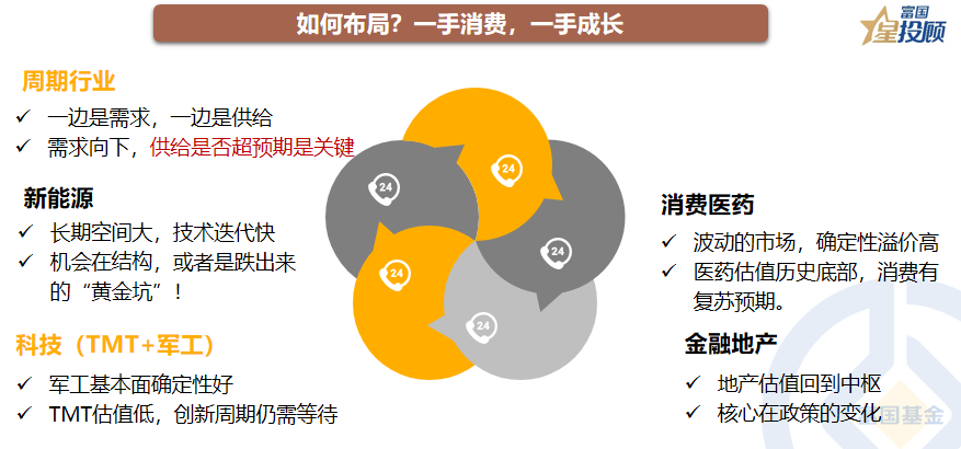 行业配置回归基本面与成长性!一方面要着眼长期,关注业绩成长性强、基本面景气度的成长板块机遇。渗透率上升、周期上行、供应受限等核心边际向上驱动因素是投资的关键。另一方面,市场情绪较差时,追求更高的安全边际。
