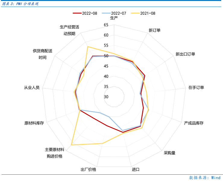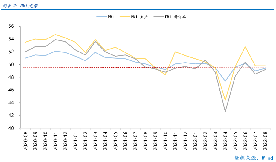 8月PMI低于“荣枯线”但环比改善,仍显示疫情扰动经济复苏。8月PMI读数为49.4,较7月读数49回升0.4百分点,但仍低于“荣枯线”,8月经济上半月受制于限电,下半月受制于疫情,8月PMI也在验证8月经济在疫情为主的扰动下仍难以复苏。