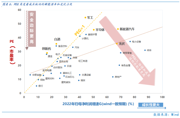 成长板块:着眼长期布局,当前成长板块的储能、光伏(设备)、风电(海风)、新能源运营商、新能源车、军工、半导体等行业PEG角度仍有估值性价比。