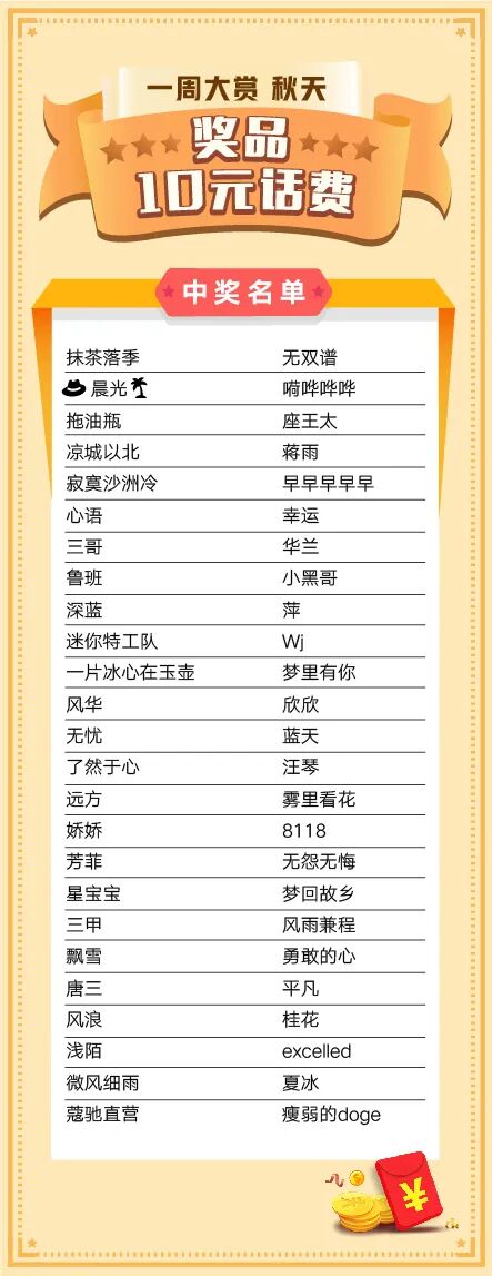 小编将于后台联系获奖的客官,话费将于9月11日(本周日)前充值到中奖客官的手机号码中,请各位客官耐心等待~