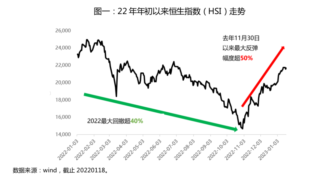 今天我们来讲讲让人“爱恨交加”的港股。22年年初到现在,港股走出了“V”型反转态势,起初22年单边下跌超40%,但从22年10月31日以来,恒生指数(HSI)从最低点到近期高点反弹幅度已超50%,港股通互联网指数(931637.CSI)反弹幅度更是超80%,尽扫往日阴霾。站下当下时点,可能很多投资者会发出灵魂拷问:涨了这么多,还能再涨吗?