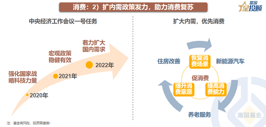 看好消费的逻辑二:扩内需政策发力,助力消费复苏。2022年中央经济工作会议把“扩大内需”列为一号任务,这是自提出供给侧改革以来,“内需”首次拔得头筹,重要性不言而喻,而且本次“扩内需”是“优先消费”,并将从“消费能力、消费条件、消费场景”三维度发力。虽然前期市场对消费有一定的预期修复,但随着经济复苏,扩大内需政策落地,仍有一定修复空间。