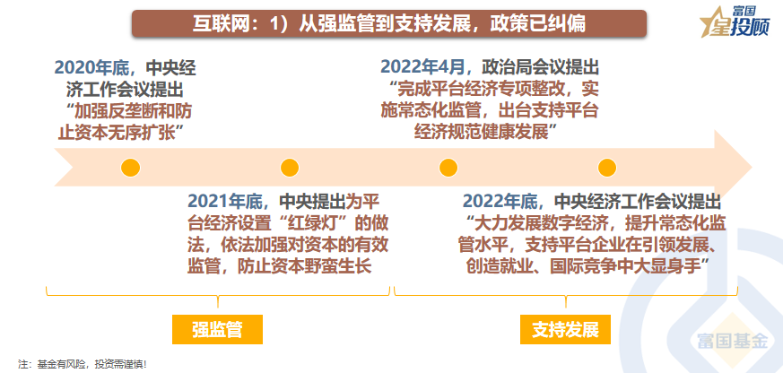 看好互联网的逻辑一:从强监管到支持发展,政策已纠偏。过去两年,互联网平台经历了政策的洗礼,从2020年底的“强化反垄断和防止资本无序扩张”,到2021年的设置“红绿灯”,到2022年4月的“支持平台经济规范健康发展”,再到2022年底的“支持平台企业在引领发展、创造就业、国际竞争中大显身手”。这意味着,平台企业将继续做大做强,并在数字经济建设中发挥重要作用。