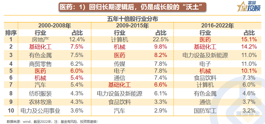 看好医药的逻辑一:回归长期逻辑后,医药仍是成长股的“沃土”。2022年的本质是杀长期因子/质量因子,哪些东西更好,长期更好,跌得越多。随着疫情放开,市场的关注焦点从短期回归长期,医疗服务、专科医院、医疗器械、创新药等优质赛道的价值有望被再度挖掘,毕竟医药是极少有的能够穿越多轮大周期“牛股集中地”。