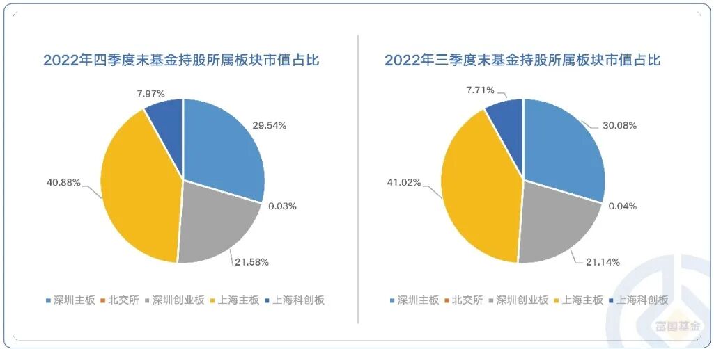 具体到板块配置上,四季度公募基金整体增配了双创板块和港股。在海外通胀压力缓解,国内疫情防控措施优化的共同影响下,11月A股整体转入上行趋势,经济修复预期下,上涨市弹性更大的成长板块愈加受到投资者青睐。海通证券数据显示,截至四季度末,公募基金在创业板以及科创板的配置比例分别为21.58%、7.97%,合计创历史新高,较三季度末分别有所上升。