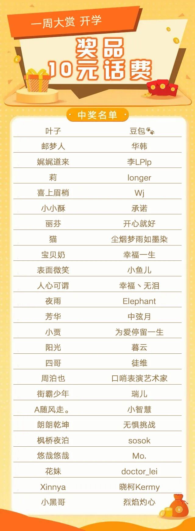 小编将于后台联系获奖的客官,话费将于2月17日(本周五)前充值到中奖客官的手机号码中,请各位客官耐心等待~