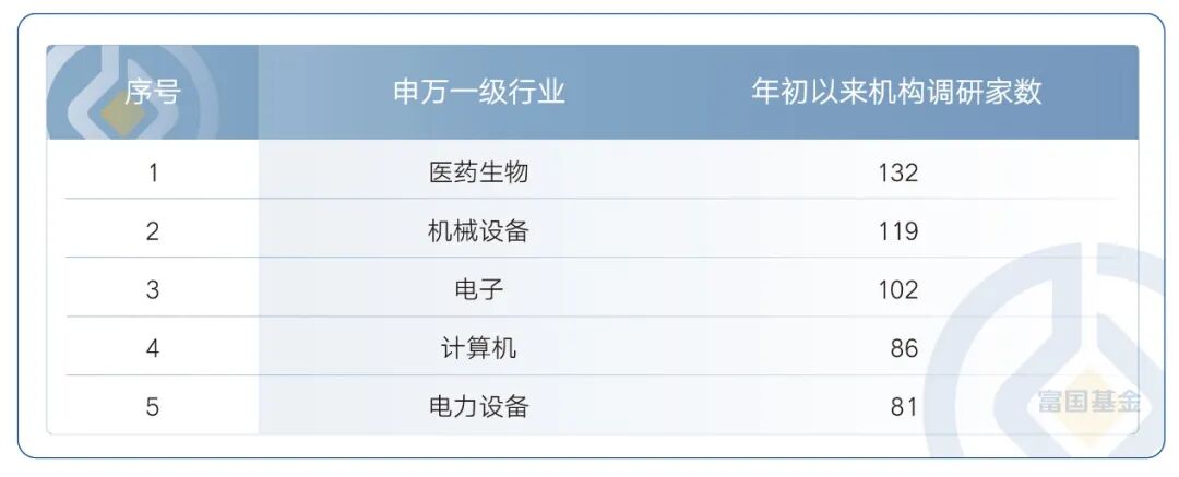 机构投资者密集出动调研,哪些行业受追捧?从行业分布来看,年初以来被机构调研的逾1000家A股公司分布在医药生物、机械设备、电子等行业,其中机械设备仅次于医药生物成为机构投资者青睐调研的第二大行业。