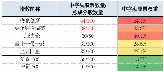 表:央国企指数的“中字头”含量