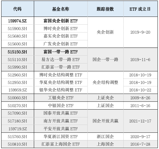 表:市场上的央/国企ETF统计